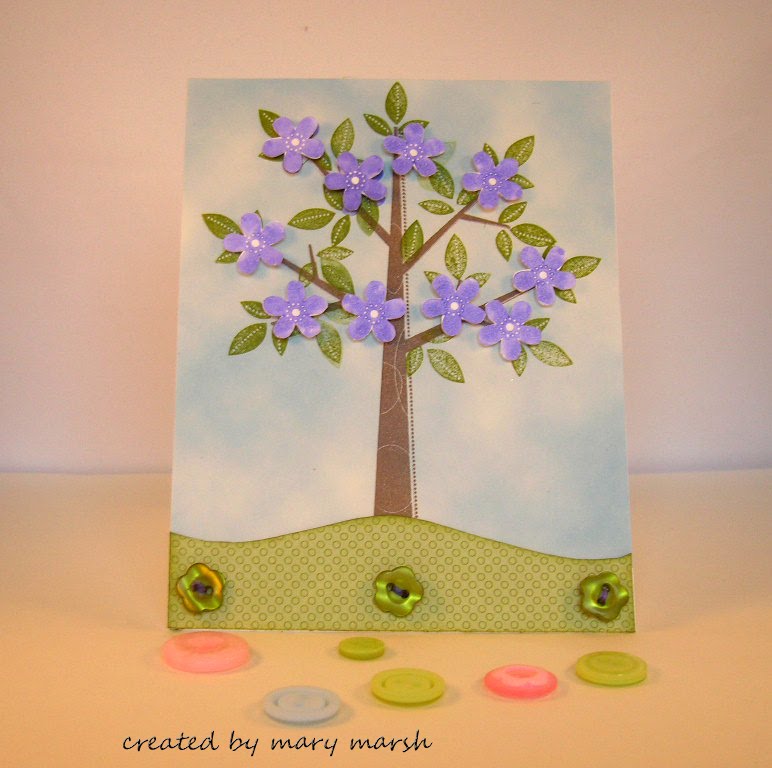 ReplyDeleteHow lovely this is, Mary!! Love the blooms on your tree and the cloudy sky. Such beautiful work! I just got those buttons yesterday and can't wait to use them for something.