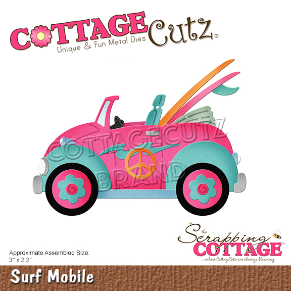 The Surf Mobile is a new die from CottageCutz and the Peace phrase is part of a CottageCutz Christmas die. I computer generated the "good vibes" sentiment.